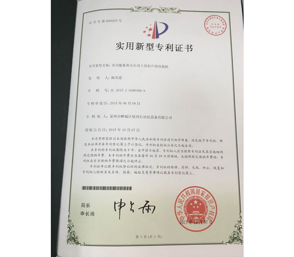 YG頭專利證書