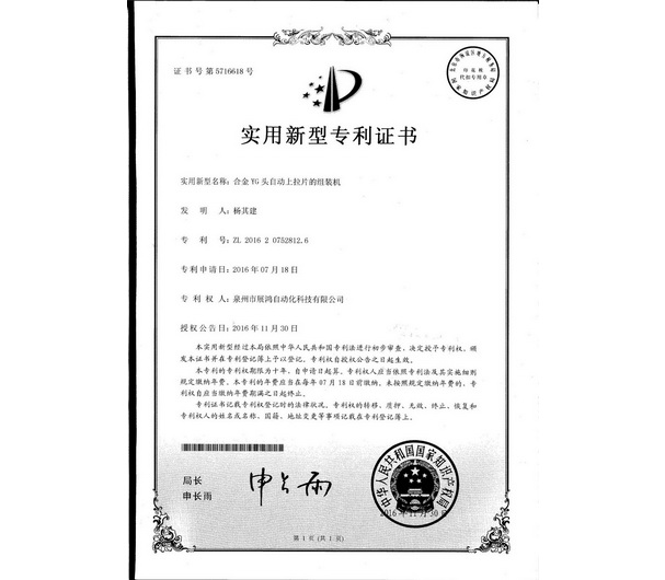 合金YG頭自動上拉片的組裝機